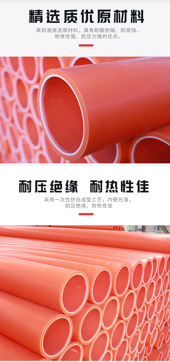 1、具有抗高溫、耐外壓的特點,適用于10KV以上高壓輸電線電纜排管管材。非開挖工程MPP排管(改性聚丙烯管)廣泛應(yīng)用于城鎮(zhèn)電力電纜、建筑給排水敷設(shè)等領(lǐng)域。